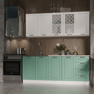 Кухня Агава 1600 Белый/Акация белая/Мята доступна к заказу в различных цветовых исполнениях, подходящих к любому интерьеру обеденной зоны.
