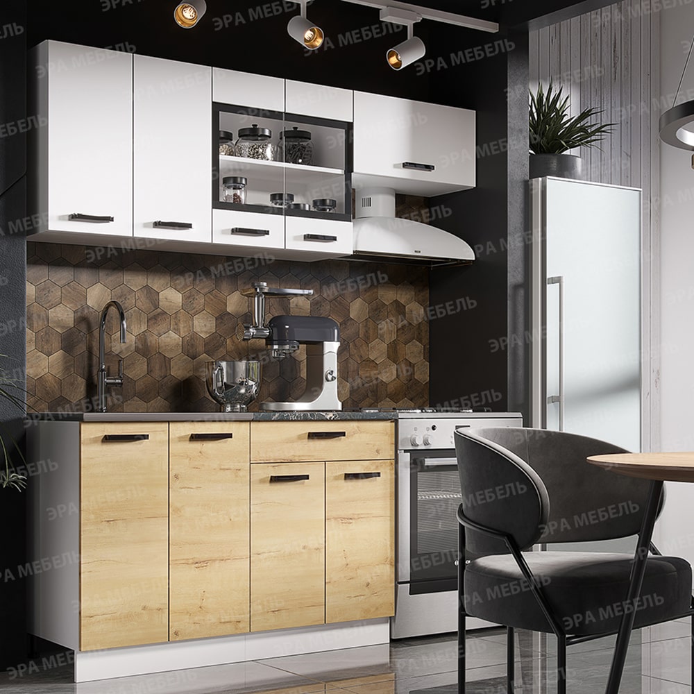 Кухня Брауни 1800 Белый гладкий/Дуб вотан, материал корпуса - ЛДСП, габариты 1800x600x2058 мм.