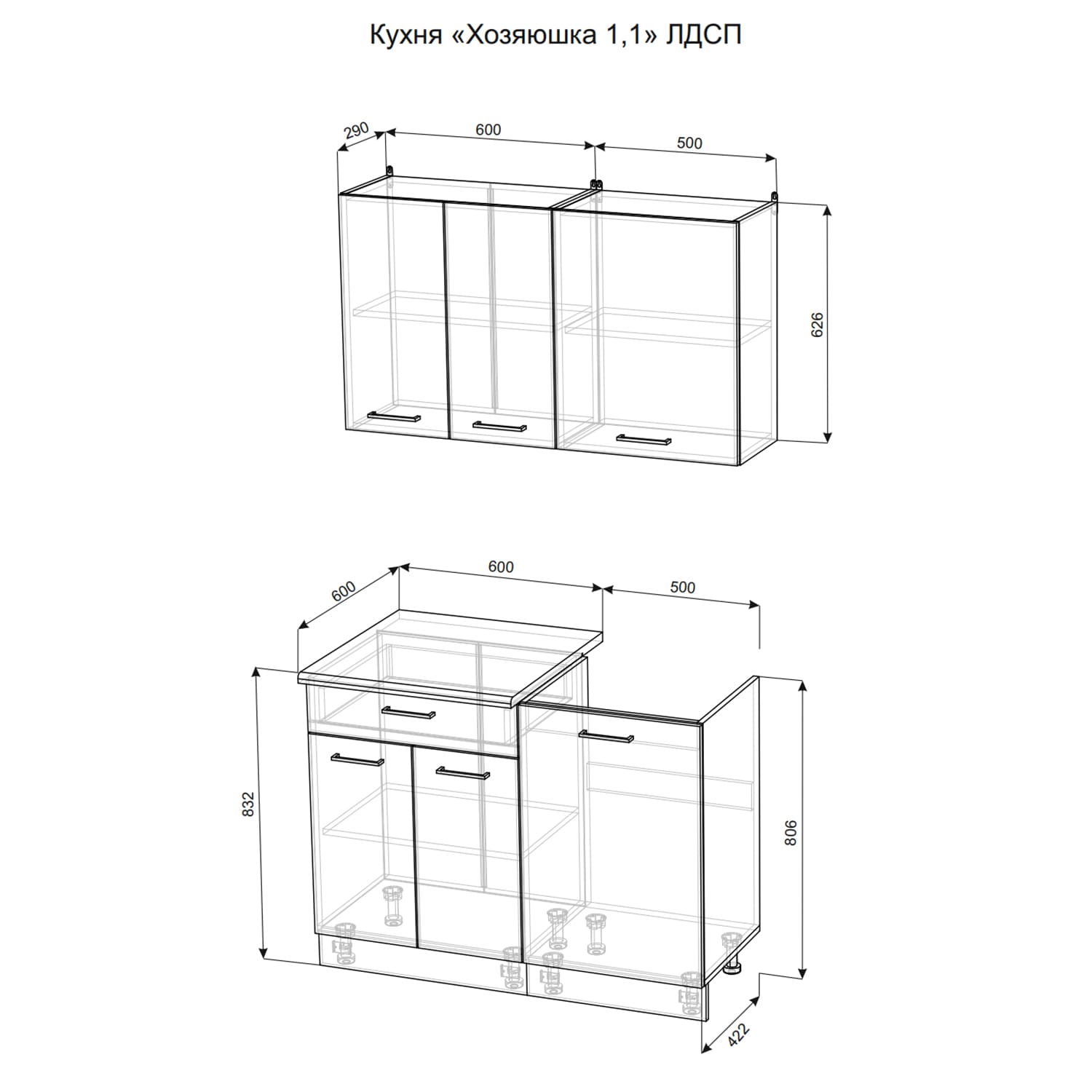 Кухня Хозяюшка 1,1 ЛДСП Дуб Вотан доступна к заказу в различных цветовых исполнениях, подходящих к любому интерьеру обеденной зоны.