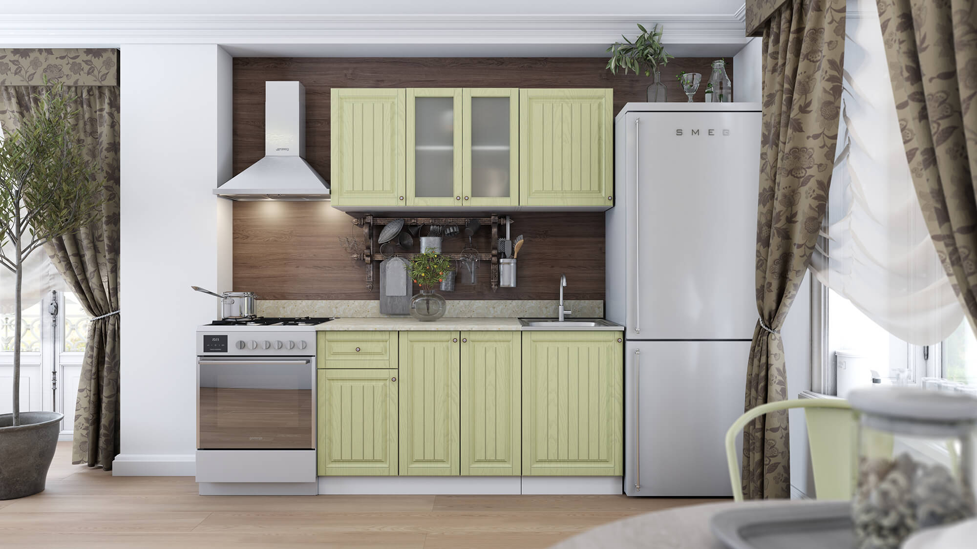 Кухня ЭРА Хозяюшка 1,5 Фисташка - это стильный и функциональный кухонный гарнитур, который станет отличным дополнением к интерьеру вашей кухни.