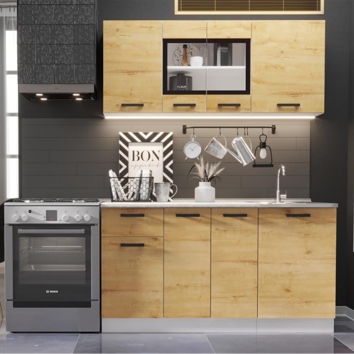 Кухня Хозяюшка 1,5 ЛДСП Дуб Вотан, материал корпуса - ЛДСП, габариты 1500x600x2100 мм.