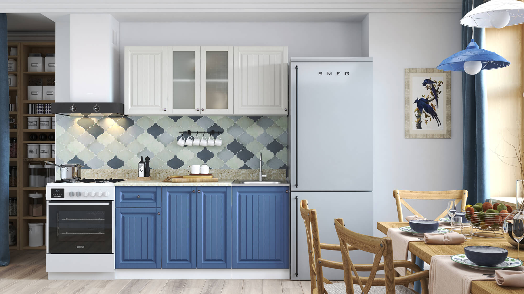 Кухня Хозяюшка 1,5 Акация Белая-Деним доступна к заказу в различных цветовых исполнениях, подходящих к любому интерьеру обеденной зоны.