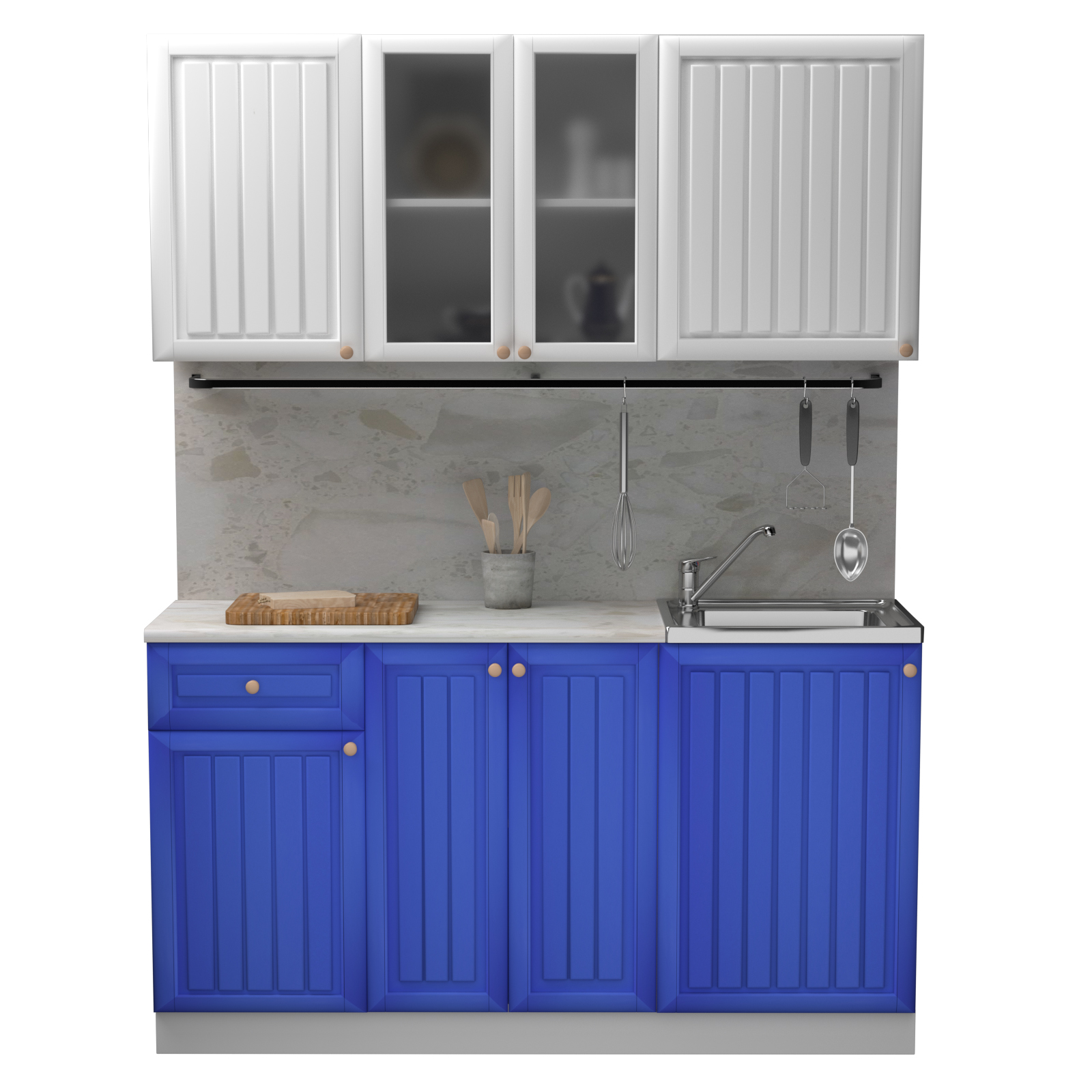 Кухня Хозяюшка 1,5 Акация Белая-Деним, материал корпуса - ЛДСП, габариты 1500x600x2100 мм.