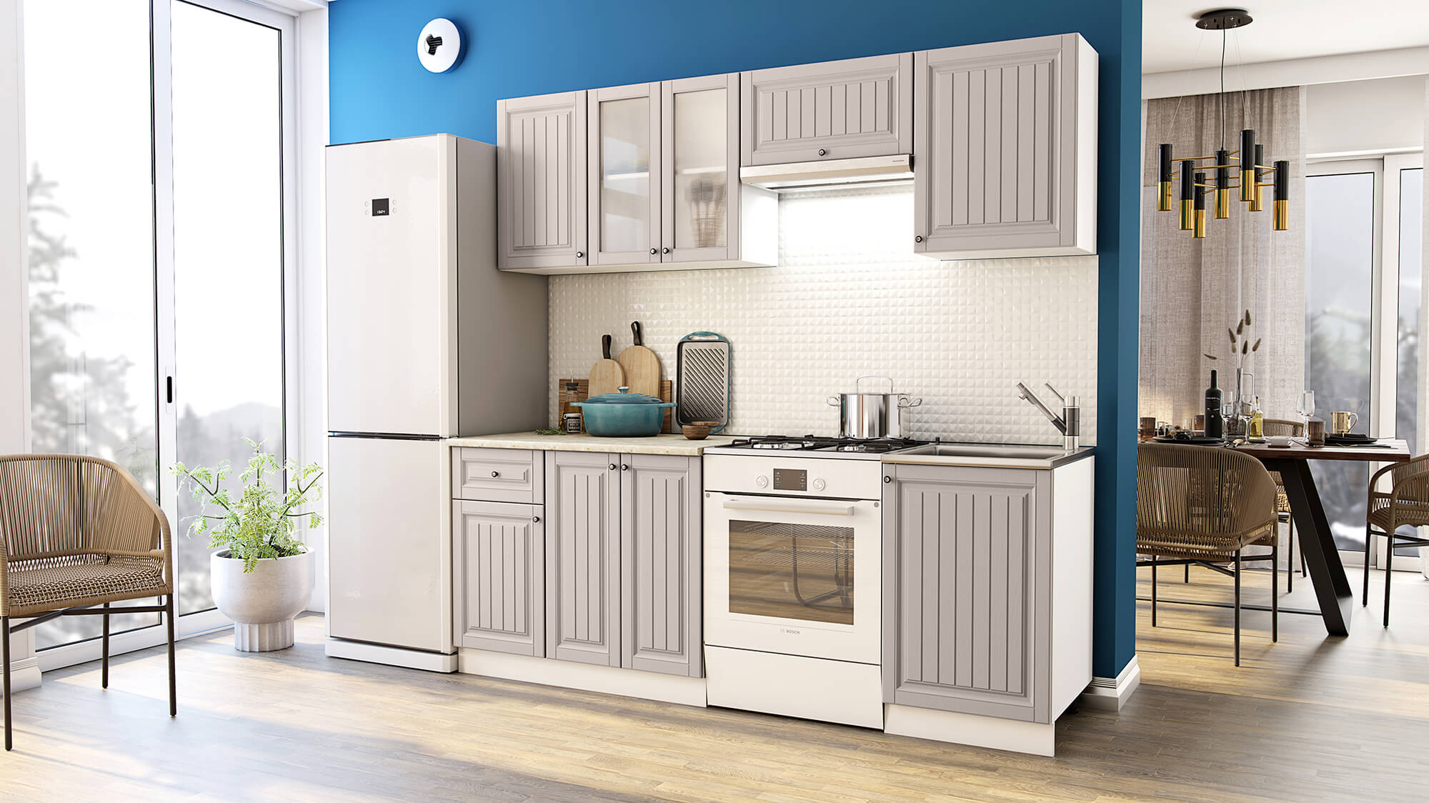 Кухня Хозяюшка 2,1 Мускат доступна к заказу в различных цветовых исполнениях, подходящих к любому интерьеру обеденной зоны.