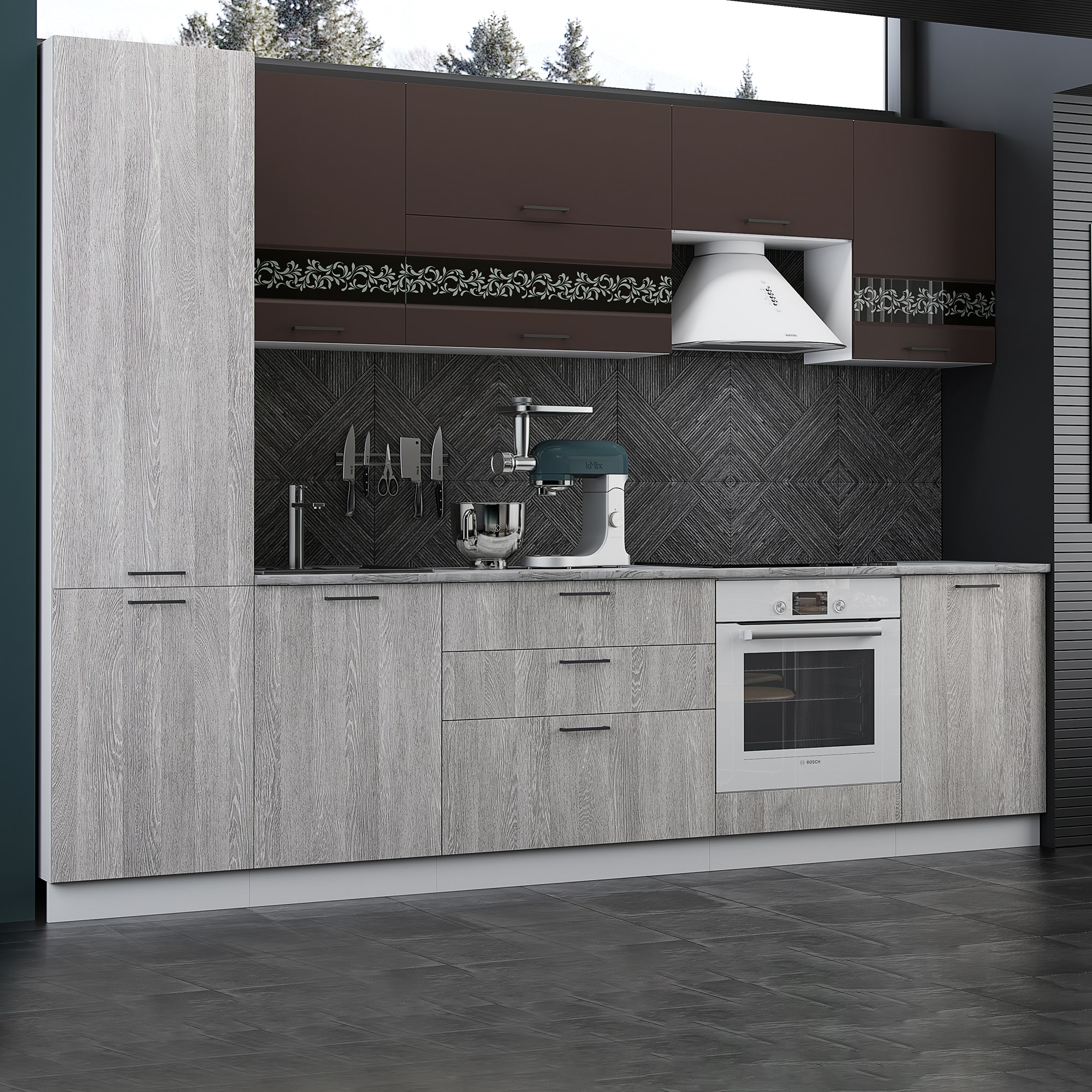 Кухня Милена 2900 Смоки софт/Вяз доступна к заказу в различных цветовых исполнениях, подходящих к любому интерьеру обеденной зоны.