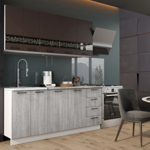 Кухня Милена 2900 Смоки софт/Вяз, материал корпуса - ЛДСП, габариты 2900x600x2140 мм.