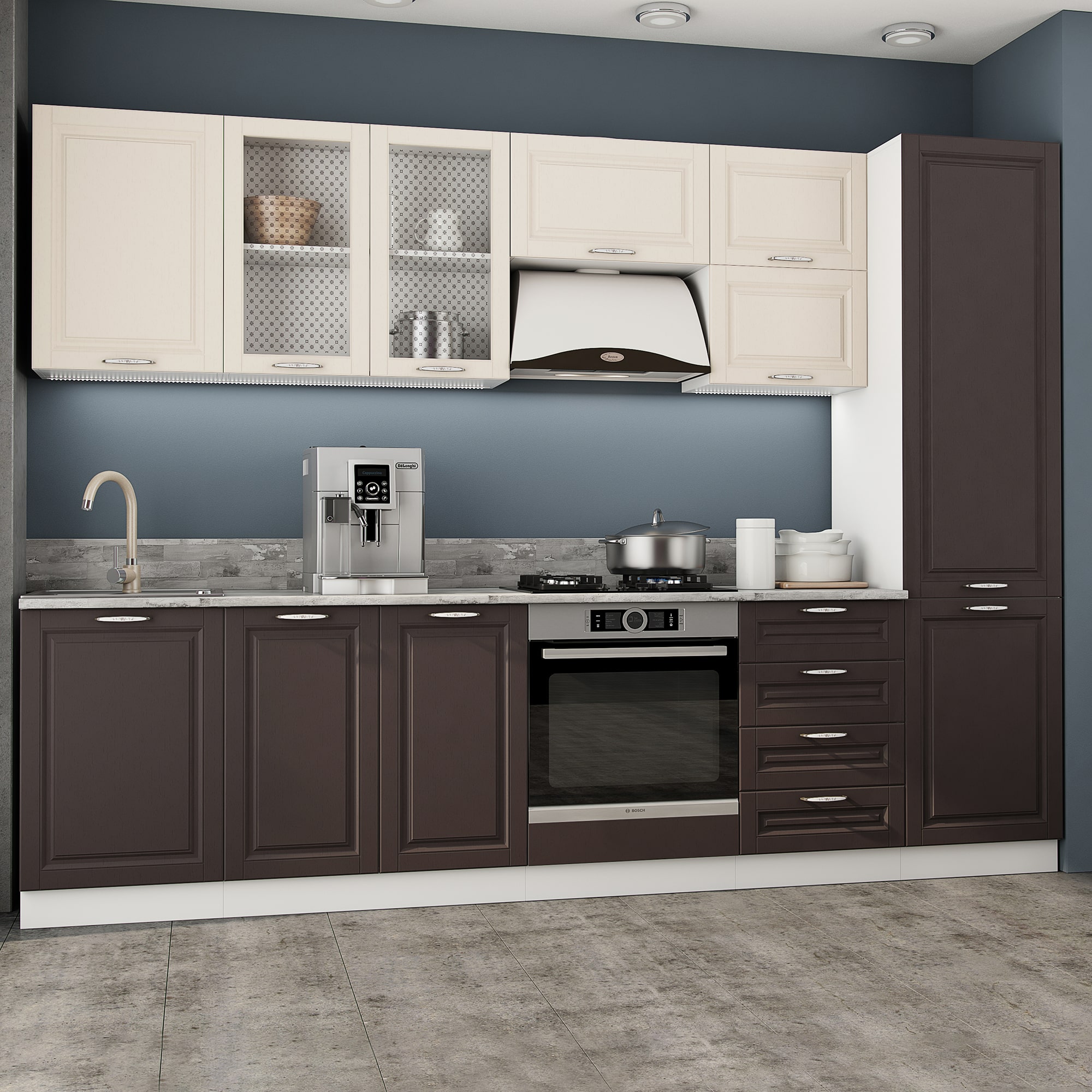 Кухня Вита 2900 Шато крем/Шато Арабика, материал корпуса - ЛДСП, габариты 2900x600x2140 мм.