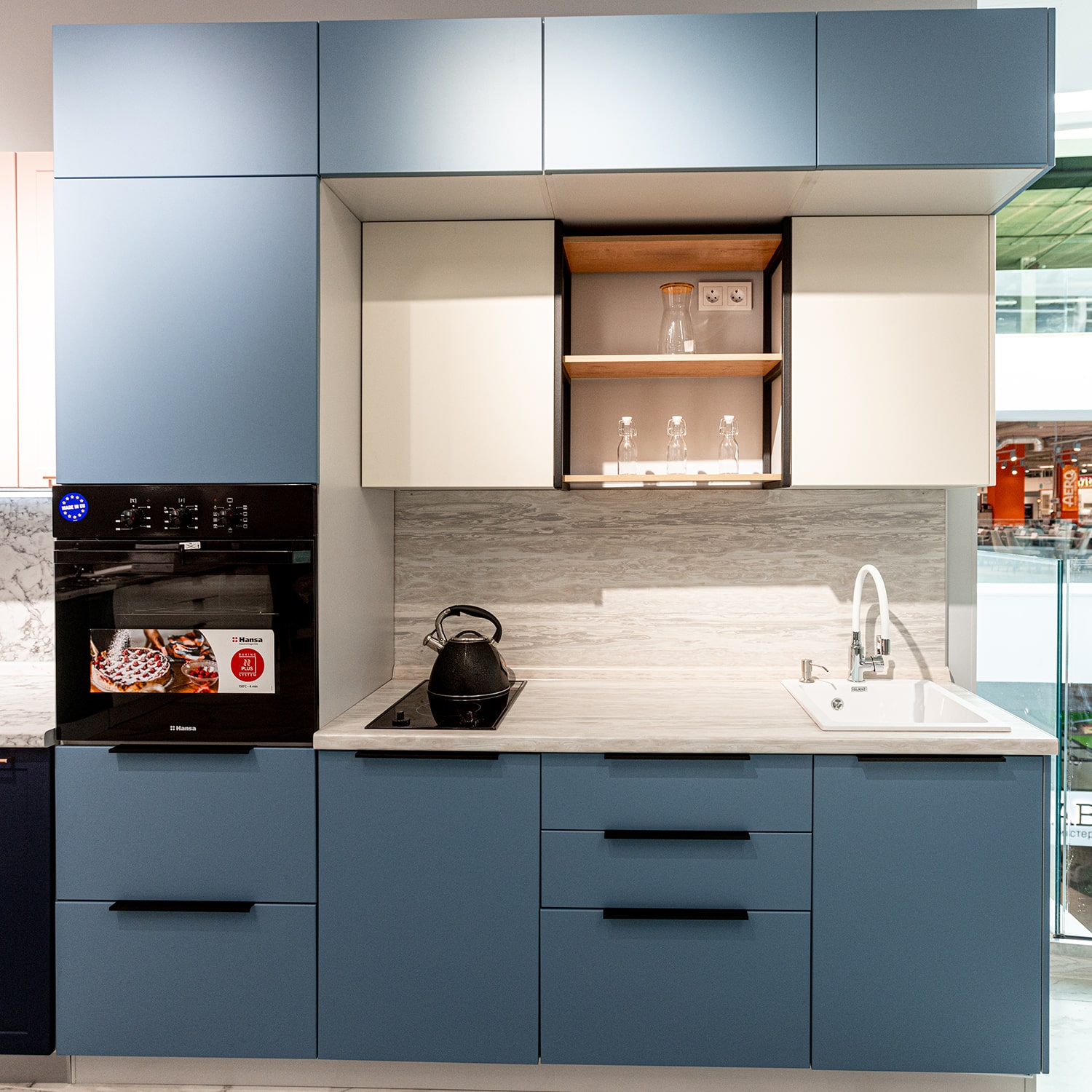 Кухонный гарнитур Ройс 2200 Лазурь/Ваниль доступна к заказу в различных цветовых исполнениях, подходящих к любому интерьеру обеденной зоны.