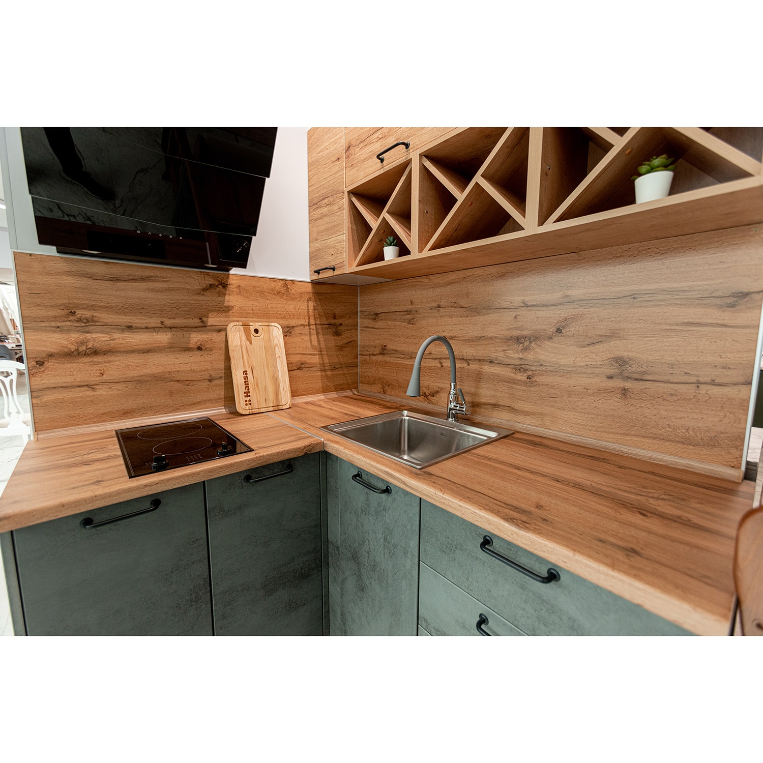 В комплект входит: верхние и нижние модули, столешница 38 мм (Дуб золотой), стеновая панель, мойка врезная 4948 MELANA ЛЮКС 1,0/220 САТИН, смеситель для кухни Accona A9890T-1 Серый/Хром.