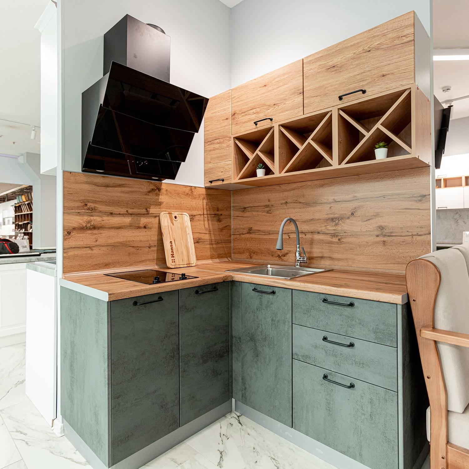 Кухонный гарнитур Лофт 1500х1300 Бетон темный/Дуб цикорий доступна к заказу в различных цветовых исполнениях, подходящих к любому интерьеру обеденной зоны.