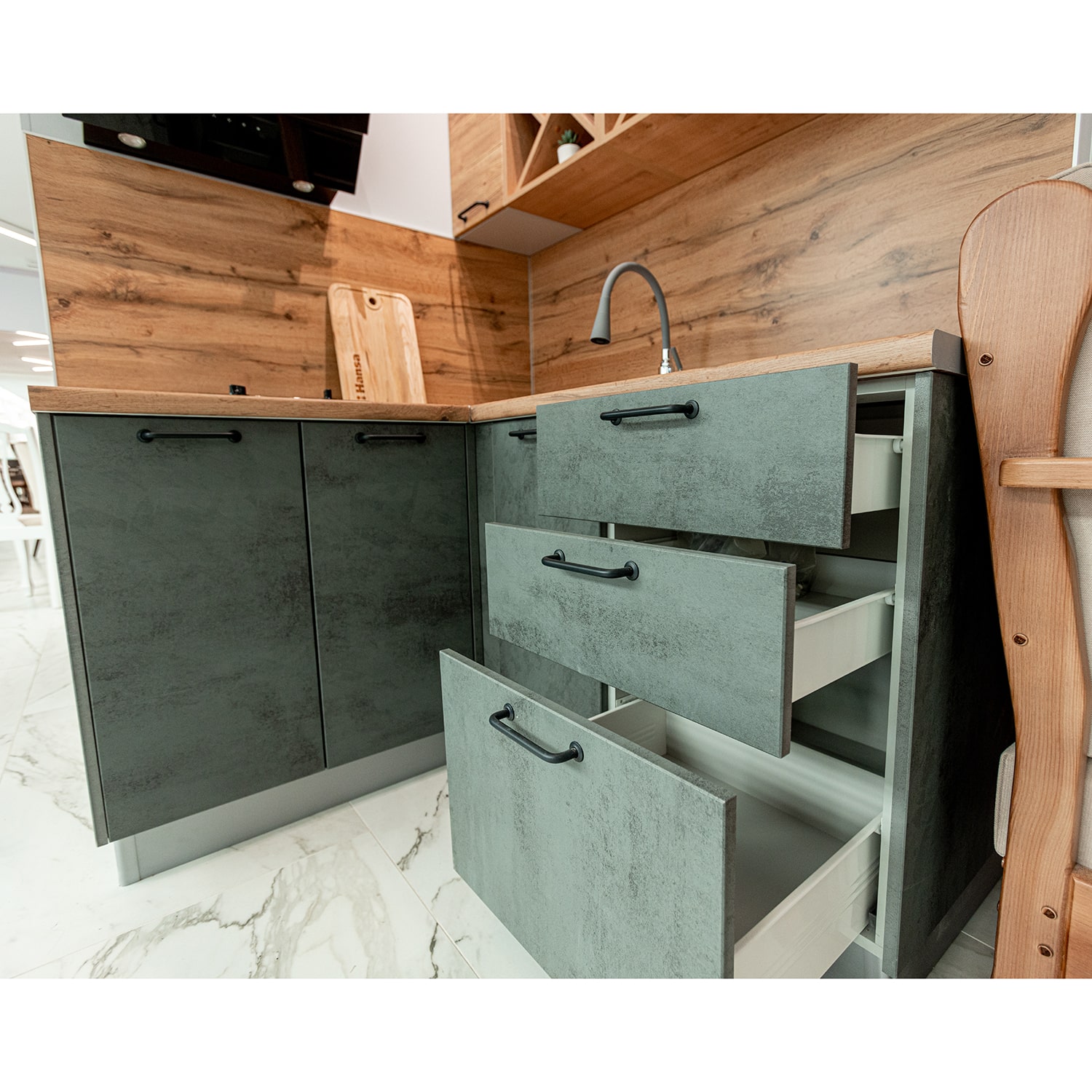 Цвет фасада: Бетон темный/Дуб цикорий.