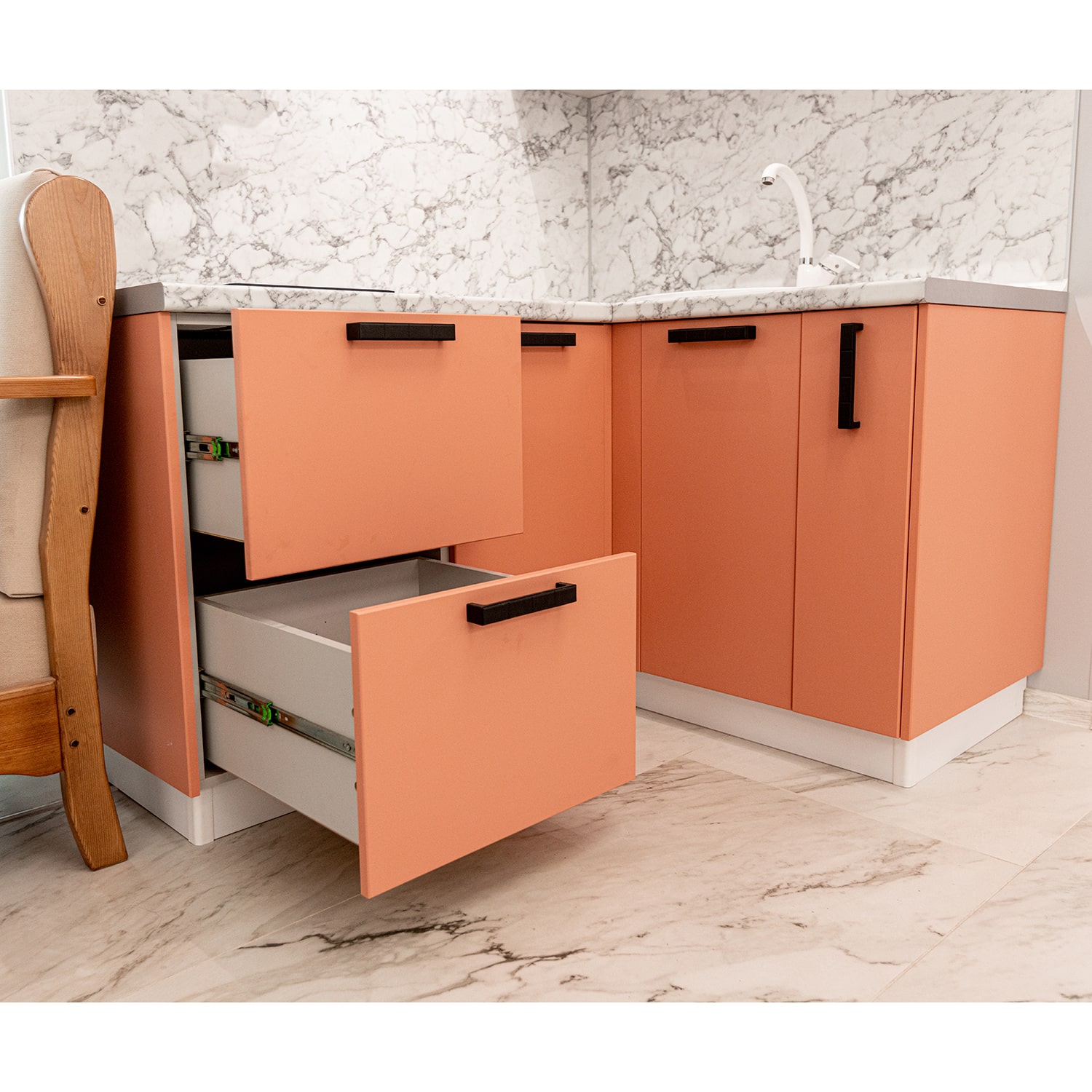 Кухонный гарнитур Ройс 1200х900 Черный/Персик доступна к заказу в различных цветовых исполнениях, подходящих к любому интерьеру обеденной зоны.