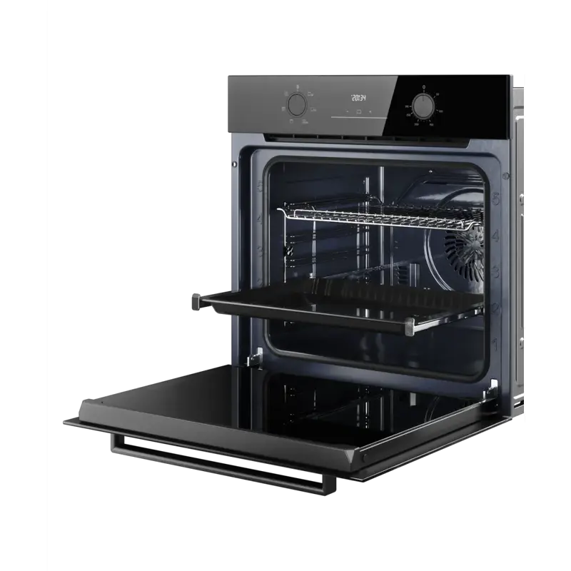 Духовой шкаф оснащен 6 режимами работы, которые подойдут для повседневных и более сложных рецептов. Телескопические направляющие на одном уровне обеспечивают безопасное и удобное извлечение противней.