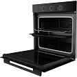 Управление производится при помощи трех утапливаемых поворотных переключателей. Механический таймер дает возможность задавать продолжительность приготовления. Гидролизная система очистки в сочетании с эмалью Easy Clean сокращают время ухода за духовкой —достаточно протереть внутренние поверхности влажной тканью после остывания. Встроенное освещение позволяет контролировать процесс приготовления без необходимости открывать дверцу, сохраняя температурный режим.