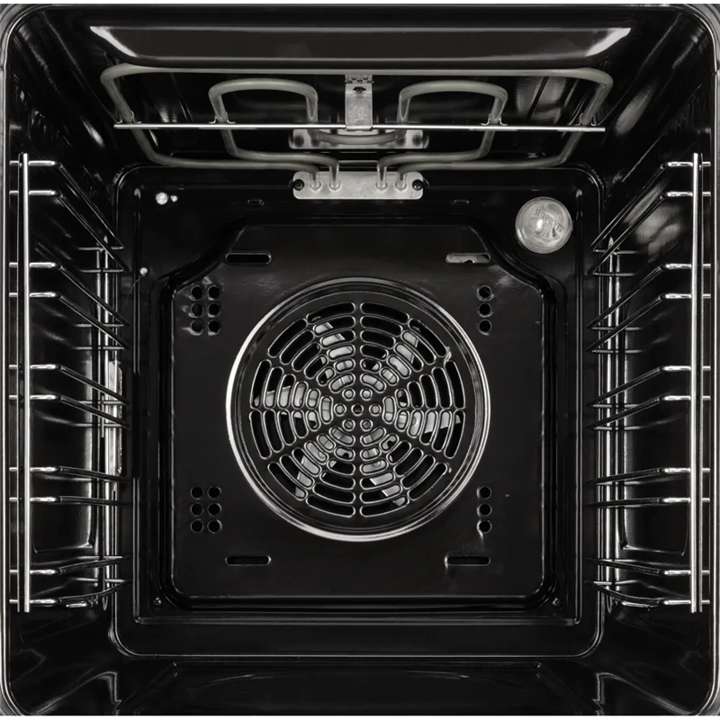 Съемные направляющие и противень из высококачественной стали устойчивы к деформации, а рельефная поверхность противня способствует равномерному распределению тепла. Закаленное стекло фасада устойчиво к механическим воздействиям, а при случайном разрушении рассыпается на мелкие осколки без острых краев. Энергоэффективность класса А+ снижает эксплуатационные затраты, а продуманная вентиляция предотвращает перегрев окружающих поверхностей. Габариты ниши для встраивания (60×43×56 см) адаптированы под стандартные кухонные модули.