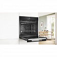 Духовой шкаф оснащен системой Home connect, теперь вы можете управлять устройством с помощью голосового помощника. Имеются телескопические направляющие на 1 уровне, они нужны для безопасного извлечения противня. 4D горячий воздух одновременно распределяет тепло на всех уровнях приготовления.