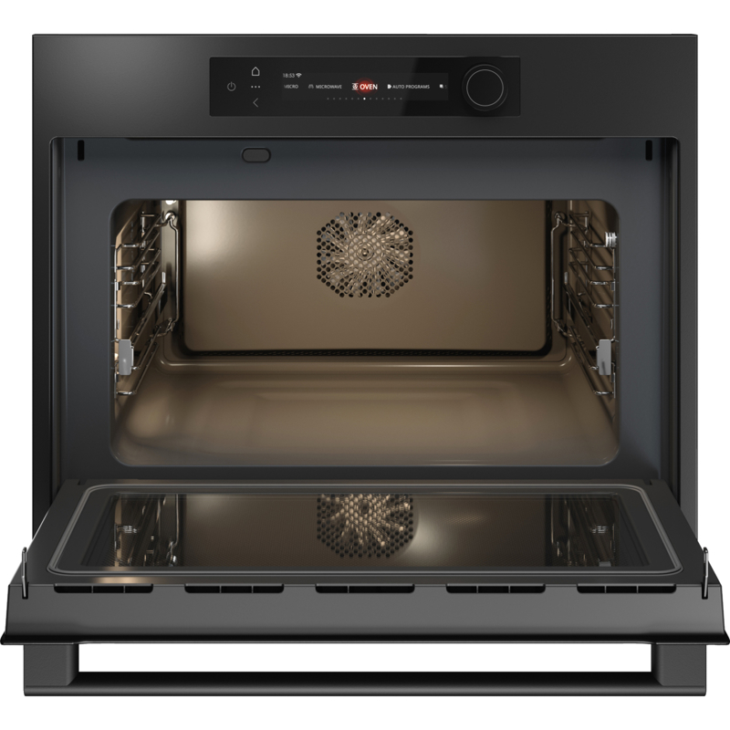 ASKO OCM64GSH отличается лаконичностью форм и изящным исполнением. Фасад выполнен в строгом графитовом цвете, гармонирующем практически с любым интерьером кухни. Компактные габариты — высота всего 45 см — позволяют установить технику даже в небольших помещениях, экономя полезное пространство.