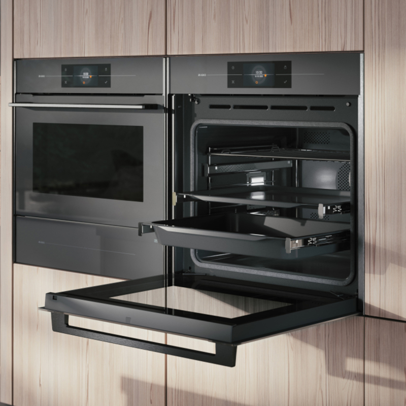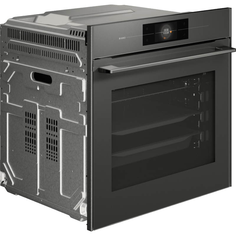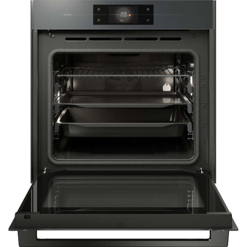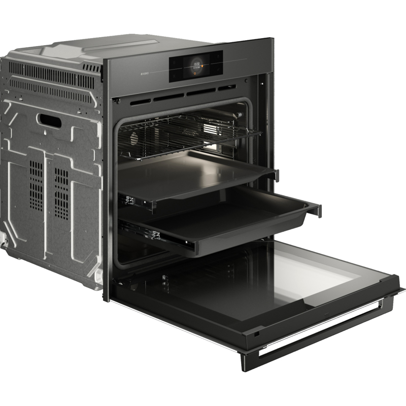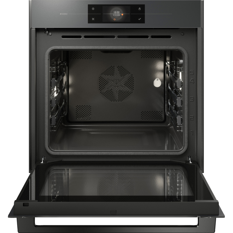 Asko OP8678GG выполнена в стильном сером графитовом цвете, который гармонично вписывается в современные кухни. Сенсорный дисплей с интуитивным управлением позволяет легко выбирать режимы и настраивать параметры готовки.