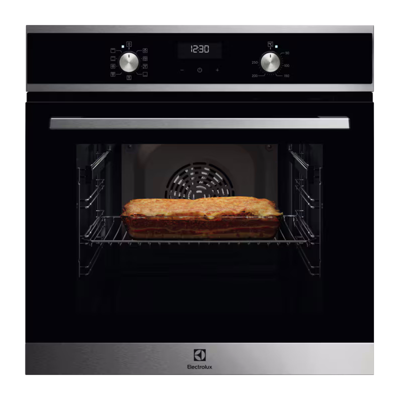 Электрический духовой шкаф Electrolux EOF5F50BX в стильном исполнении из нержавеющей стали станет настоящим украшением современной кухни. Компактные размеры (59×59,4×56 см) позволяют легко встроить прибор в любой кухонный гарнитур.