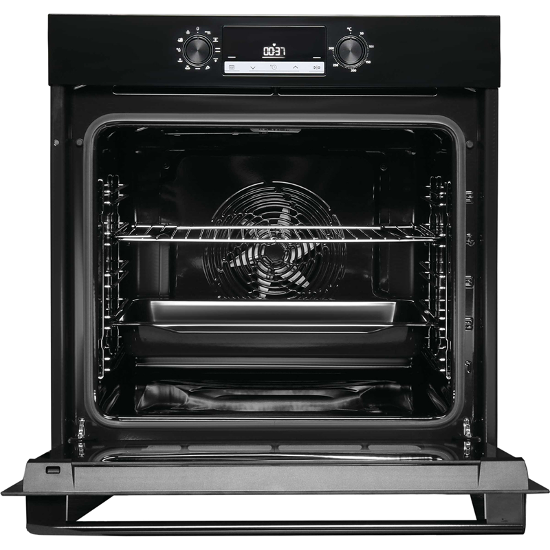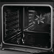 Данная модель духового шкафа оснащена сенсорным управлением VISION LED и панелью управления из нержавеющей стали, что делает его использование удобным и простым. Духовой шкаф предлагает десять различных режимов приготовления, включая режим быстрого нагрева и функцию "Гратен". Он также оснащен утапливаемыми поворотными регуляторами, LED дисплеем белого цвета и двухслойным остеклением. Объем духовки составляет 77 литров, что позволяет готовить блюда для семьи или компании гостей. Духовой шкаф оснащен системой очистки камеры Steam Cleaning и автоматическим отключением. В комплекте идут глубокий противень и хромированная решетка. Духовой шкаф выполнен в черном цвете, что придает ему современный и стильный вид.