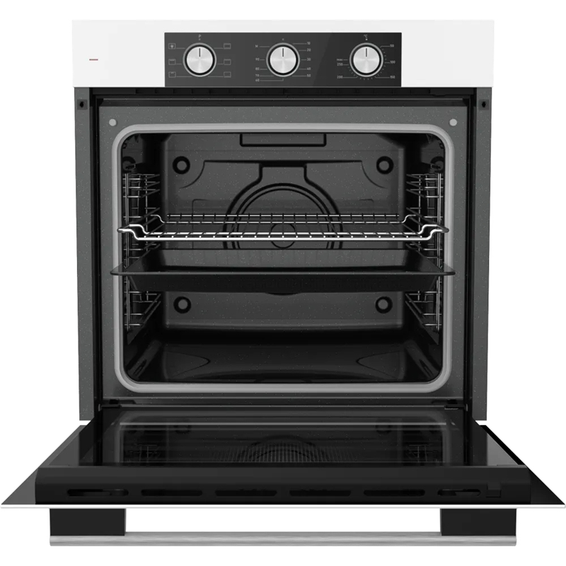 Управление производится при помощи трех утапливаемых поворотных переключателей. Механический таймер дает возможность задавать продолжительность приготовления. Гидролизная система очистки в сочетании с эмалью Easy Clean сокращают время ухода за духовкой —достаточно протереть внутренние поверхности влажной тканью после остывания. Встроенное освещение позволяет контролировать процесс приготовления без необходимости открывать дверцу, сохраняя температурный режим.