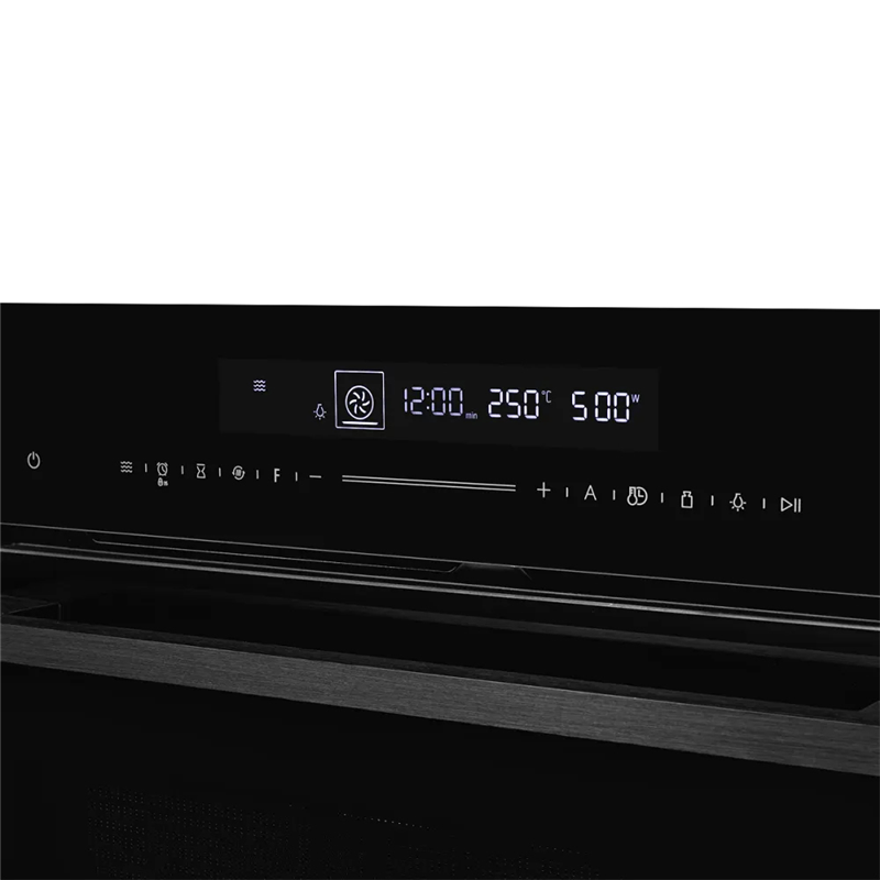 Прибор идеален для малогабаритных кухонь благодаря высоте 45,4 см и стандартной ширине 59,5 см. Несмотря на скромные размеры, духовка объемом 50 л, а четырехслойная дверца с технологией «холодного фронта» обеспечивает термоизоляцию. Внешнее стекло остается безопасным на ощупь даже при максимальной температуре 250°C. Дверца легко снимается для глубокой очистки, а плавный доводчик Soft Close исключает резкие хлопки, продлевая срок службы механизмов.
