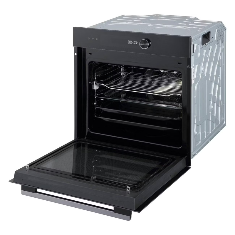 Прибор обладает компактными для своей функциональности размерами и предназначен для встраивания в стандартную нишу шириной 60 см. Его лаконичный черный дизайн с сенсорной панелью управления и темно-серой фурнитурой органично впишется в современный кухонный гарнитур. Несмотря на внешнюю сдержанность, внутреннее пространство впечатляет: объем камеры составляет 72 литра, что достаточно для одновременного приготовления нескольких блюд. Безопасность и комфорт обеспечены за счет четырехслойного стекла дверцы, которое остается холодным снаружи, а также системы принудительного охлаждения, которая не позволяет корпусу перегреваться. Съемная дверца значительно упрощает процесс очистки.