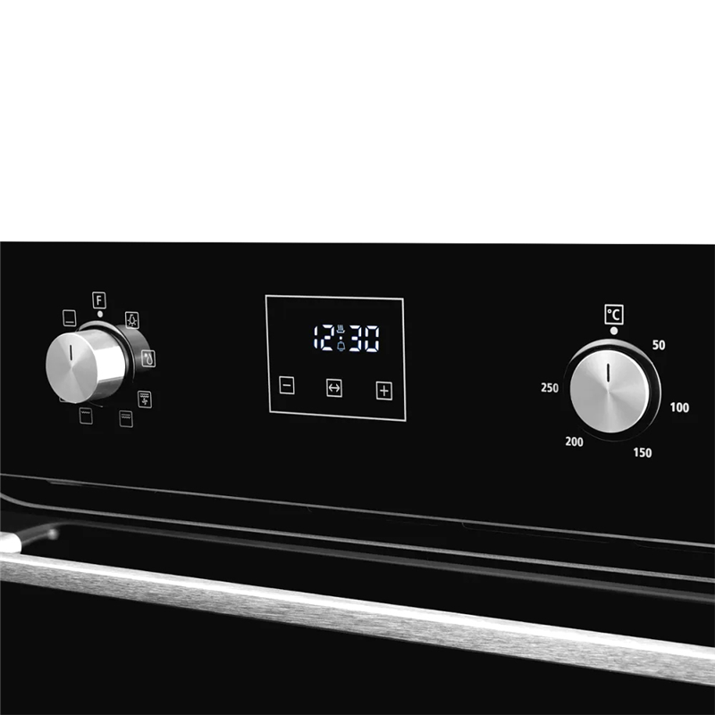 Для выбора параметров приготовления используются механические поворотные переключатели, утапливаемые в панель. Дополнительный сенсорный программатор позволяет без труда задавать время приготовления или отложенный старт, предоставляя вам больше свободы. Встроенное яркое освещение камеры дает возможность визуально контролировать процесс готовки, не открывая дверцу и не нарушая температурный режим, что особенно важно для выпечки и других деликатных блюд.
