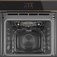 Камера прибора укомплектована направляющими на пяти уровнях и двумя галогенными лампами мощностью 40 Вт, которые обеспечивают хороший обзор пространства. Диапазон поддерживаемых температур — от 30°С до 250°С. Двойной воздуховод формирует воздушный поток, который снижает уровень конденсата во время приготовления пищи.