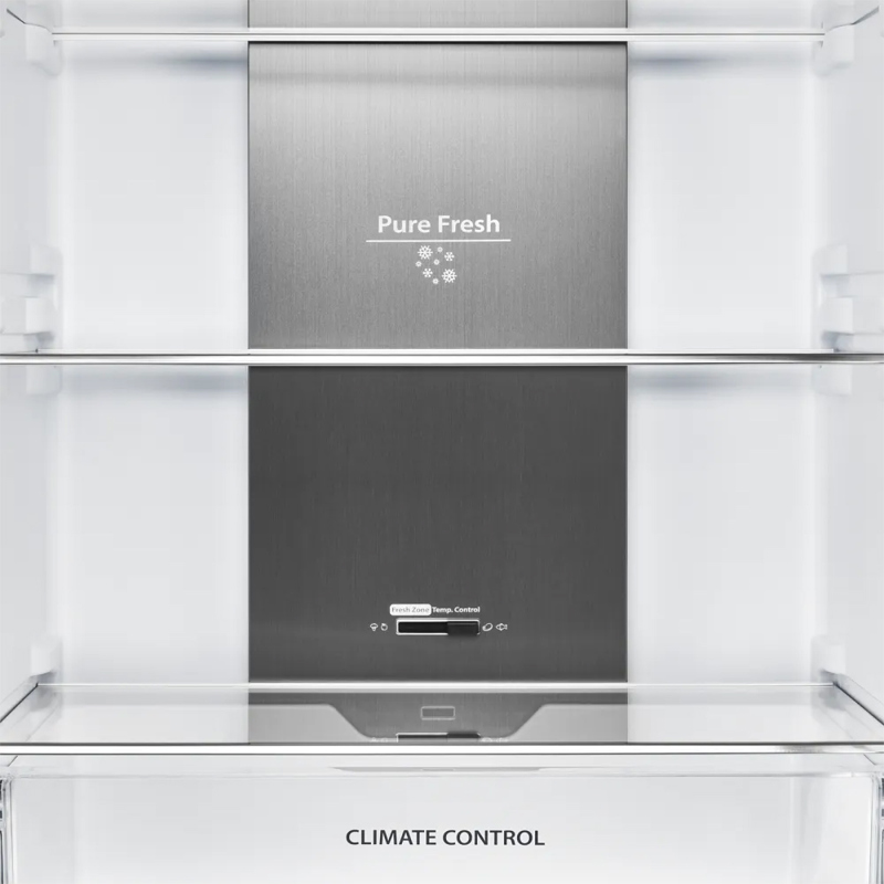 Общий полезный объем в 402 литра позволяет с комфортом разместить большой запас продуктов для всей семьи. В холодильной камере предусмотрена специальная зона свежести Fresh Zone. В ней поддерживается температура, близкая к нулю, что создает идеальные условия для хранения охлажденного мяса, рыбы и молочных продуктов, значительно продлевая их свежесть.