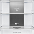 Полный контроль над работой устройства обеспечивает электронная система управления с информативным LED-дисплеем на двери. Пользователю доступны функции «Суперохлаждение» для быстрого понижения температуры в холодильной камере и «Суперзаморозка» для морозильного отделения, которая сохраняет максимум полезных веществ в продуктах. Система Total No Frost полностью исключает образование льда и инея в обеих камерах, избавляя от необходимости ручной разморозки.