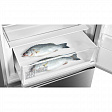Полезный объем холодильника составляет 386 л, из которых 263 л отведено под холодильную камеру, а 123 л — под морозильник, расположенный внизу. Внутреннее пространство верхнего отсека организовано с максимальным удобством: прочные полки из закаленного стекла легко выдвигаются, а наличие специальной зоны свежести подходит для длительного хранения овощей, фруктов и зелени. Морозильная камера оборудована тремя вместительными ящиками, а на дверце холодильного отделения найдется место для бутылок и небольших продуктов.