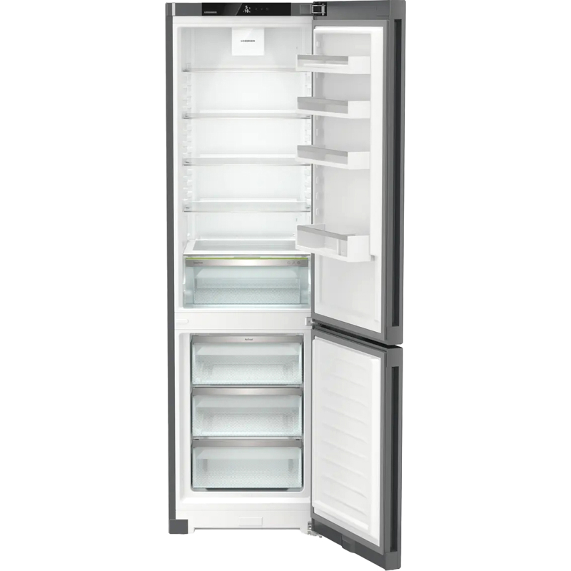 Холодильник Liebherr CNdgc 5703-20 001 Pure — это воплощение передовых технологий и европейского качества. Модель в цвете DarkGrey с дверью из стали станет стильным и надежным элементом современной кухни. Благодаря утопленным вертикальным ручкам и строгому дизайну холодильник визуально выглядит монолитно и лаконично. Общий полезный объем составляет 360 л, что позволяет с легкостью делать запасы на всю семью.