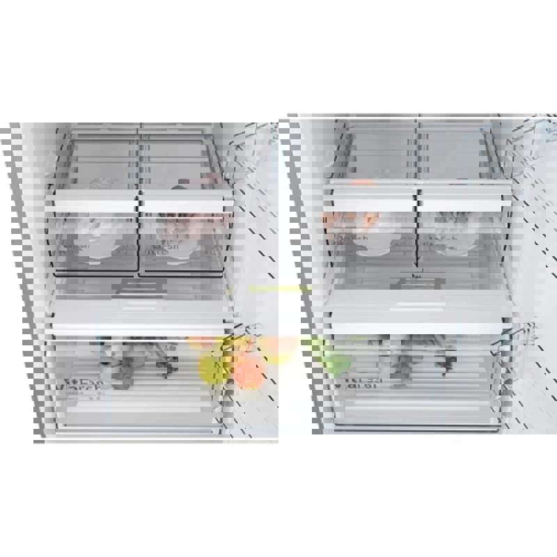 Система MultiAirflow с вентилятором усиливает циркуляцию воздуха внутри холодильника и поддерживает равномерную температуру и влажность сверху донизу. Колебания температуры минимальны, сокращается время охлаждения – это помогает сохранить свежесть и вкус продуктов дольше.