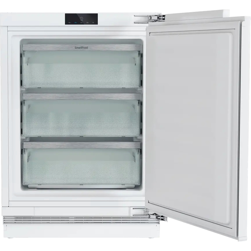 Морозильная камера Liebherr SUFc 3703-20 001 Pure – модель встраиваемого типа, может быть установлена под столешницу. Для монтажа требуется ниша размерами 86-92 х 60 х 56,0 см. Максимально возможный вес фасадной двери – 10 кг, угол открывания – 115°. Общий объем прибора составляет 94 л, мощность замораживание составляет 7,2 кг в сутки. Технология SmartFrost позволяет реже размораживать устройство.