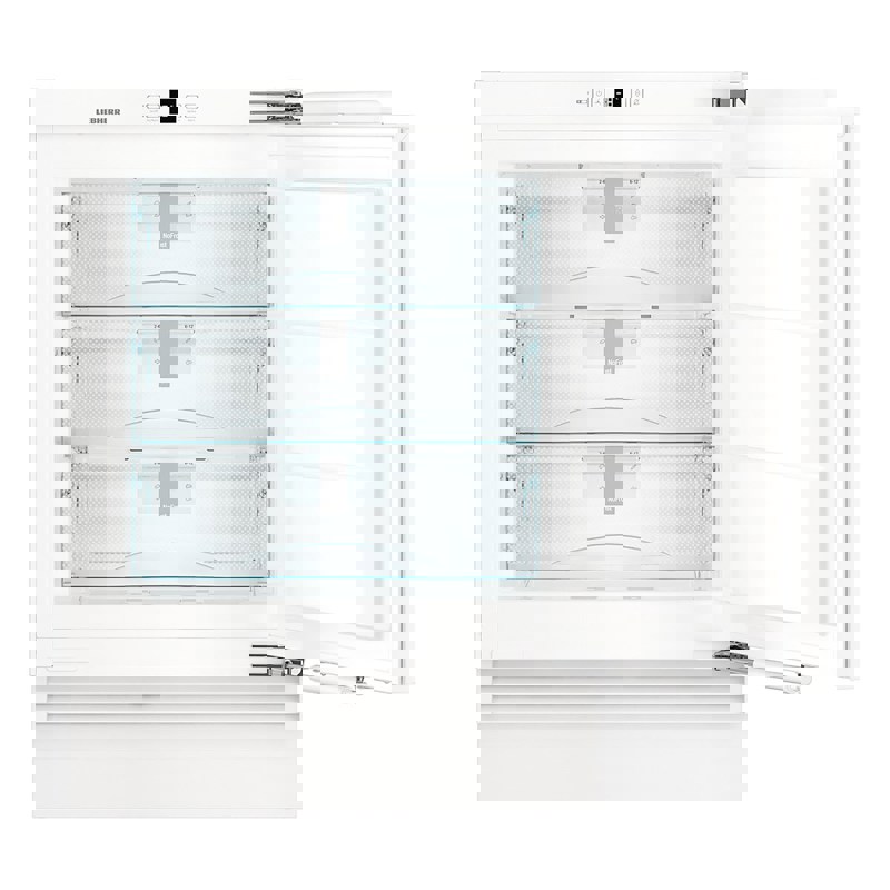 Liebherr SUIGN 1554-26 001 обладает общим объемом 98 литров, что позволяет удобно хранить большое количество продуктов. Внутри камеры расположены полностью закрытые выдвижные ящики системы FrostSafe, которые обеспечивают удобный доступ и надежное хранение продуктов. Прозрачные контейнеры позволяют легко найти нужные продукты, а система VarioSpace позволяет гибко организовать пространство для хранения.
