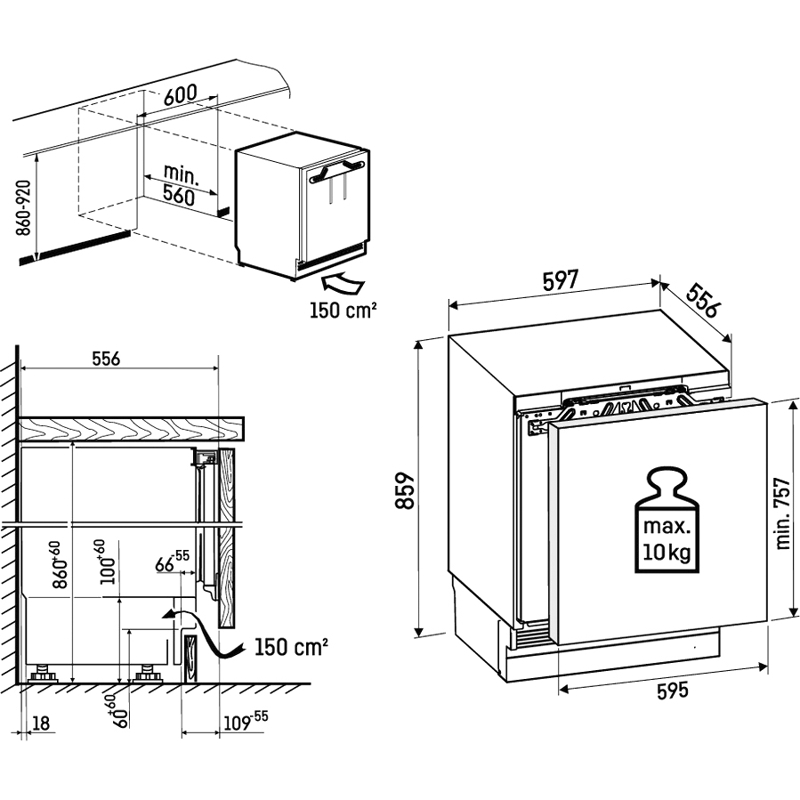 Благодаря компактному размеру устройство можно установить под прилавком. Для устойчивого положения ножки регулируются. При необходимости дверцу можно перенавесить.