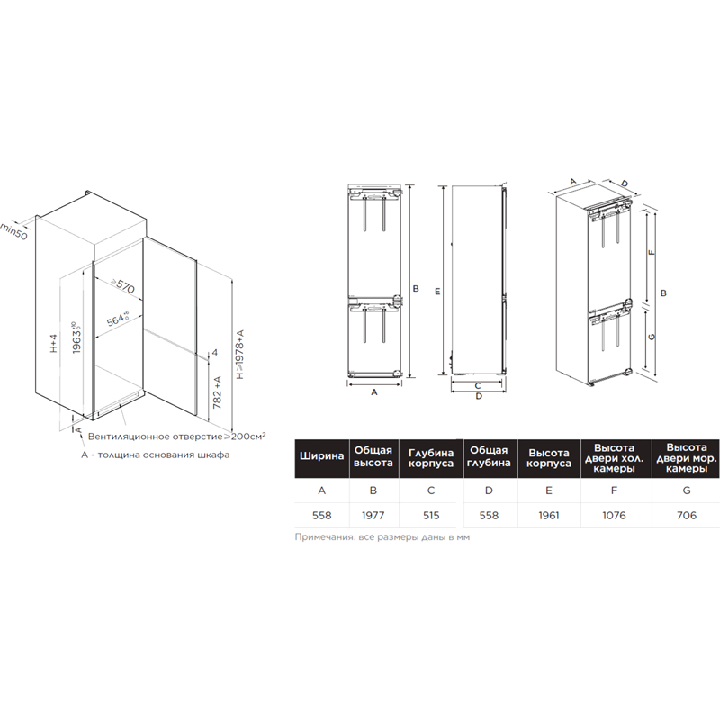 Встраиваемый холодильник Midea MDRE416FGE01M — это надёжное решение для тех, кто ценит комфорт и порядок на кухне. Общий полезный объём — 307 литров, из которых 219 литров занимает холодильная камера и 88 литров — морозильная. Этого достаточно для хранения продуктов всей семьи.