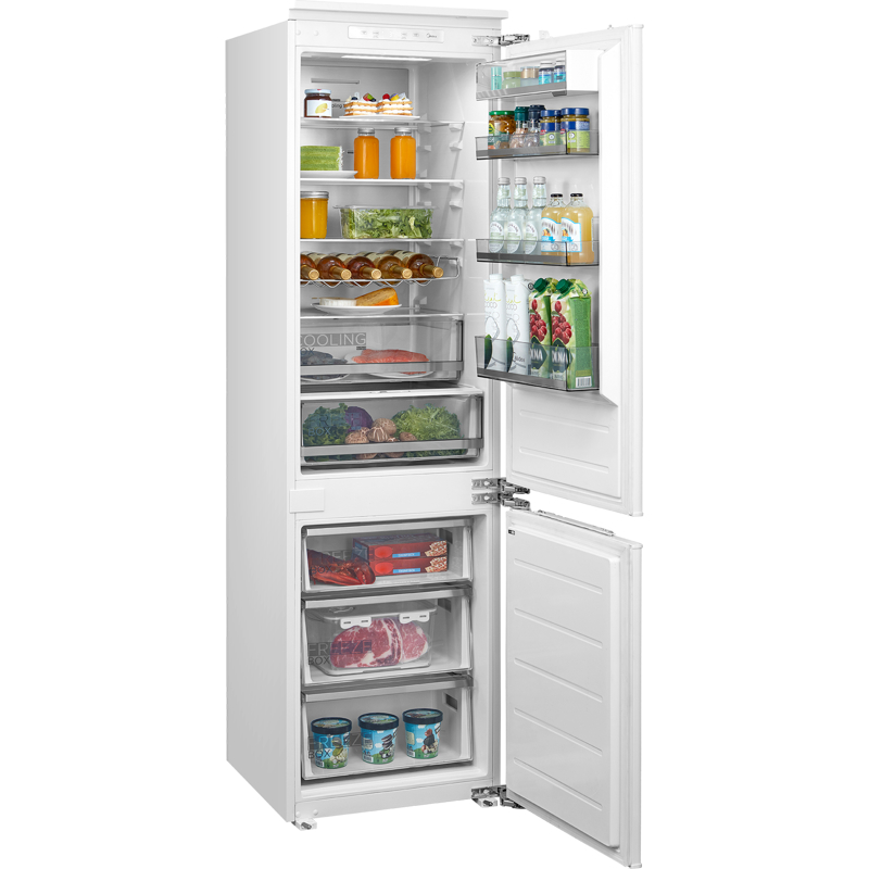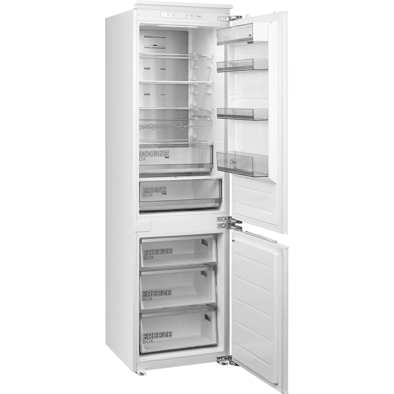 Встраиваемый холодильник Midea MDRE416FGE01M — это надёжное решение для тех, кто ценит комфорт и порядок на кухне. Общий полезный объём — 307 литров, из которых 219 литров занимает холодильная камера и 88 литров — морозильная. Этого достаточно для хранения продуктов всей семьи.