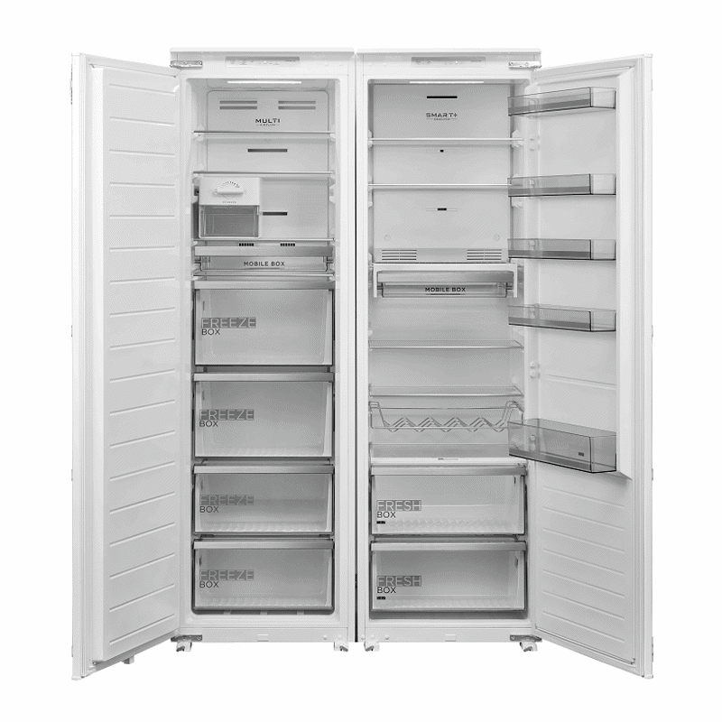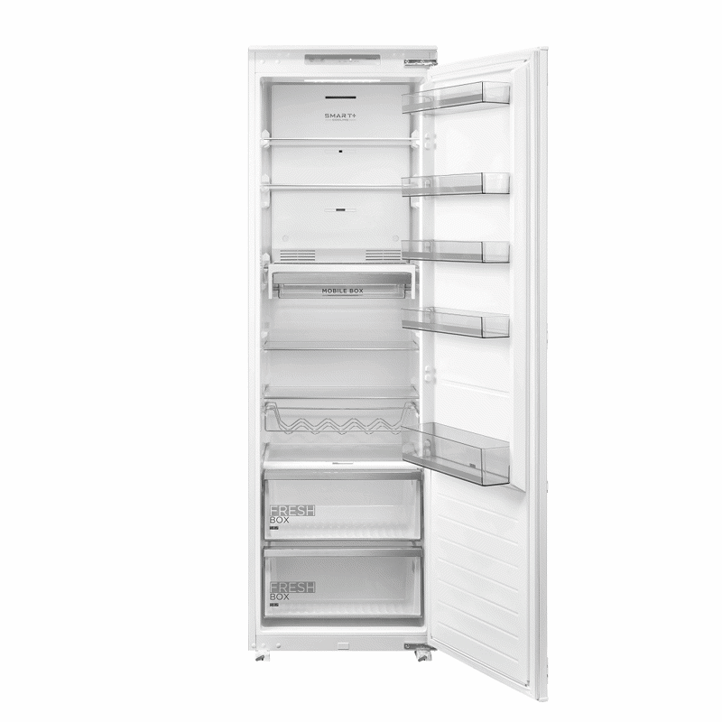 Полезный объем холодильника составляет 304 литра, что достаточно для хранения большого количества продуктов. Его размеры (1785х540х545 мм) позволяют легко встроить его в кухонную мебель, обеспечивая гармоничное сочетание с другими элементами интерьера. Такие габариты делают его подходящим для различных типов кухонь, включая небольшие и средние по размеру.