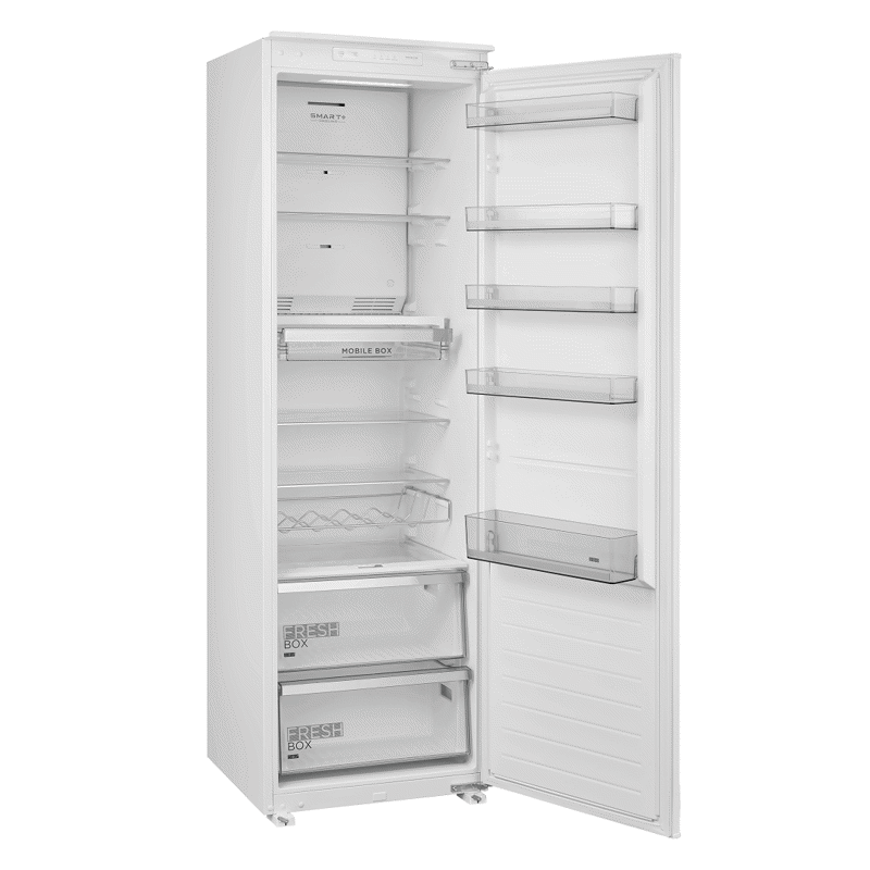 Полезный объем холодильника составляет 304 литра, что достаточно для хранения большого количества продуктов. Его размеры (1785х540х545 мм) позволяют легко встроить его в кухонную мебель, обеспечивая гармоничное сочетание с другими элементами интерьера. Такие габариты делают его подходящим для различных типов кухонь, включая небольшие и средние по размеру.