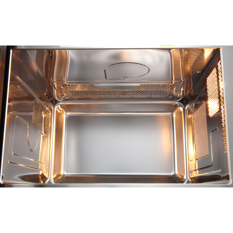 Внутренняя камера из нержавеющей стали и стеклянный поворотный стол диаметром 315 мм отличаются повышенной долговечностью и простотой в очистке. Светодиодная подсветка обеспечивает отличную видимость содержимого, позволяя контролировать процесс приготовления без необходимости открывать дверцу. Наличие решетки для гриля расширяет кулинарные возможности. Предусмотрен таймер со звуковым сигналом, оповещающим о завершении процесса.