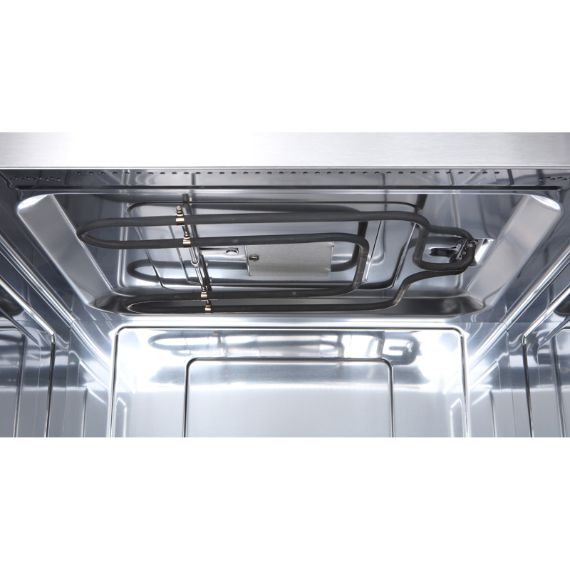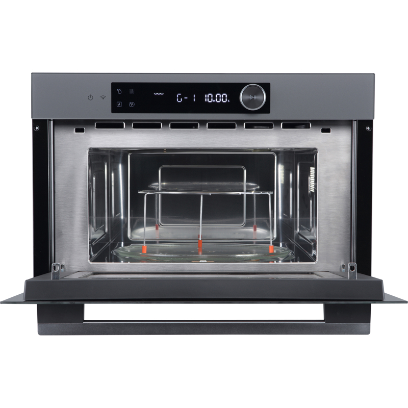 Дверца из двухслойного стекла и стеклянная рамка не только эффектно выглядят, но и обеспечивают максимальную безопасность и эффективную теплоизоляцию во время работы устройства. Предусмотрен блокиратор от случайного включения, что актуально при наличии детей в доме. Модель поставляется в комплекте с решеткой для гриля, расширяющей кулинарные возможности. Точные габариты для встраивания позволяют интегрировать технику в мебельный гарнитур для создания единого ансамбля.