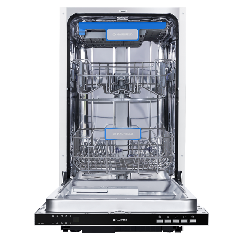 MAUNFELD MLP 08B предлагает несколько программ мытья, что позволяет выбрать оптимальный режим в зависимости от степени загрязнения посуды. Среди доступных программ можно найти экономичный режим, который позволяет экономить воду и электроэнергию, интенсивный режим для сильно загрязнённой посуды, а также режим половинной загрузки. Удобная панель управления с цифровым дисплеем позволяет легко выбирать нужные настройки.
