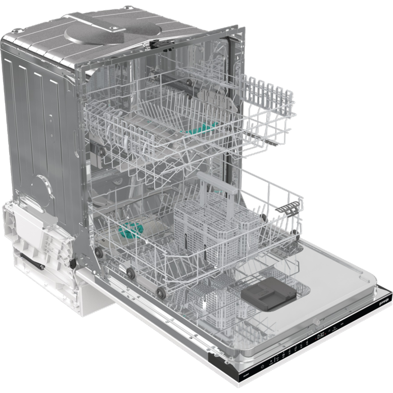 В посудомоечных машинах Gorenje верхнюю корзину можно легко переставлять между двумя уровнями. Удобное решение для мытья больших кастрюль, сковородок, мисок, тарелок и бокалов.