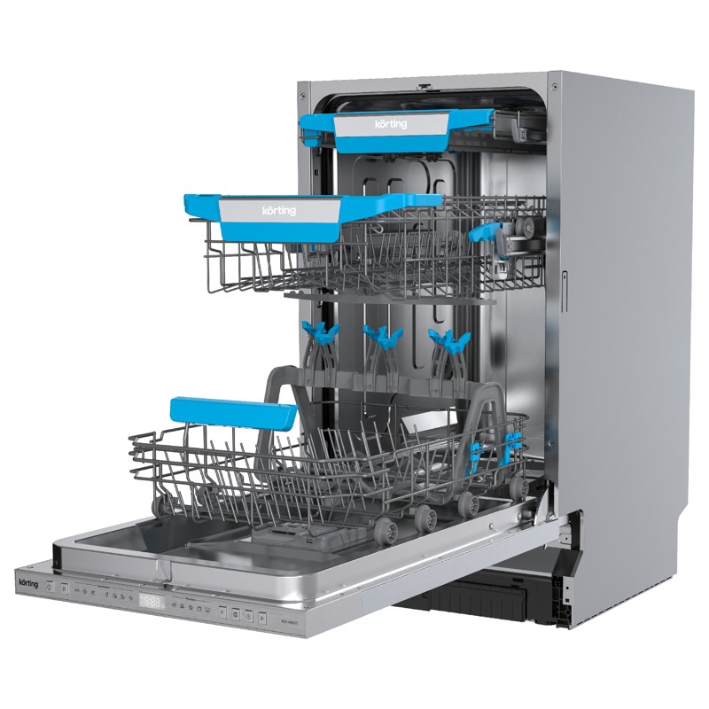 Встраиваемая посудомоечная машина Korting KDI 45557 с шириной 45 см — это идеальное решение для небольших кухонь, где ценят каждый сантиметр пространства. Спроектированная для эффективного и удобного мытья посуды, она вмещает до 10 комплектов, что позволяет легко справляться с любой загрузкой, от повседневной до праздничной.