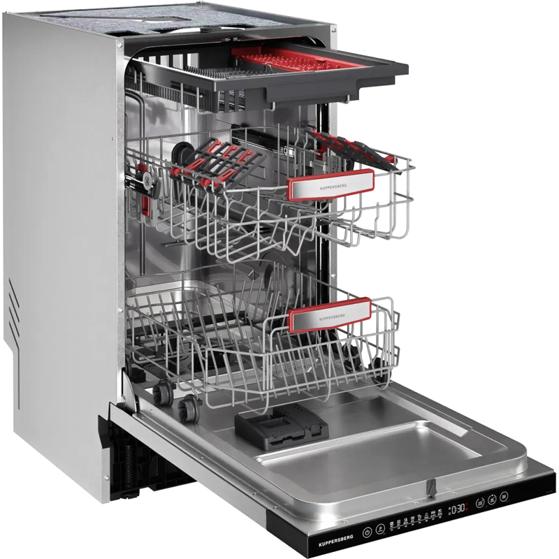 Встраиваемая посудомоечная машина KUPPERSBERG GHL 4530 с уровнем шума 42 дБ оборудована рабочей камерой из нержавеющей стали. За один цикл модель очищает до 11 комплектов.