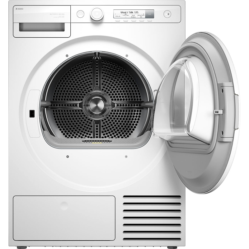 Главной особенностью ASKO T108HBW является технология Butterfly Drying, обеспечивающая щадящее обращение с тканью. Барабан движется особым способом, имитируя движения крыльев бабочки, аккуратно переворачивая белье и предупреждая возникновение складок и заломов. Таким образом, одежда остается мягкой и гладкой, готовой сразу после окончания процедуры к использованию. Еще одна полезная особенность — высокоэффективная система мультифильтрации, удерживающая мельчайшие частицы пыли и волокна ткани, обеспечивая чистоту внутренних компонентов и улучшая общую гигиену обработанного белья.