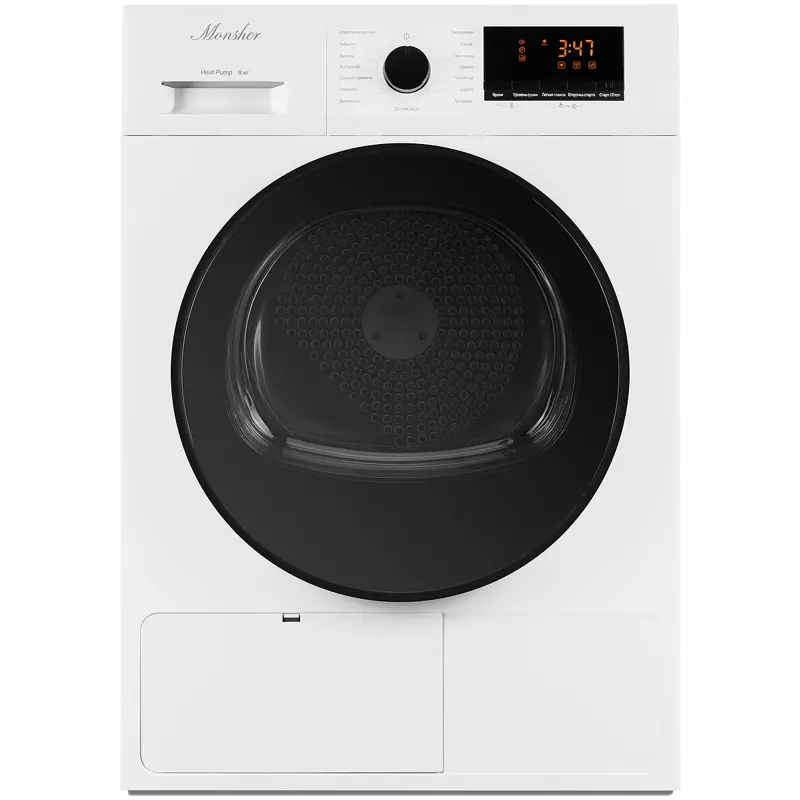 Сушильная машина Monsher MDM 630 Blanc обеспечивает высший класс сушки - A, благодаря тепловому насосу (Heat Pump). Компактные размеры (59.5 см x 84.5 см x 63 см) и вместительность до 8 кг белья делают ее отличным выбором для вашей бытовой техники.