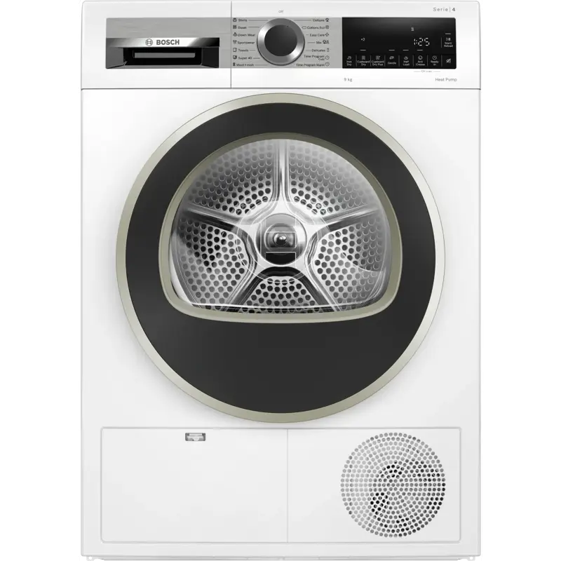 BOSCH WQG1420AME Serie 4 оснащен тепловым насосом, что делает его одним из самых энергоэффективных сушильных аппаратов на рынке. Класс энергоэффективности A++ гарантирует низкое потребление энергии, что помогает снизить расходы на электроэнергию и заботиться об окружающей среде.
